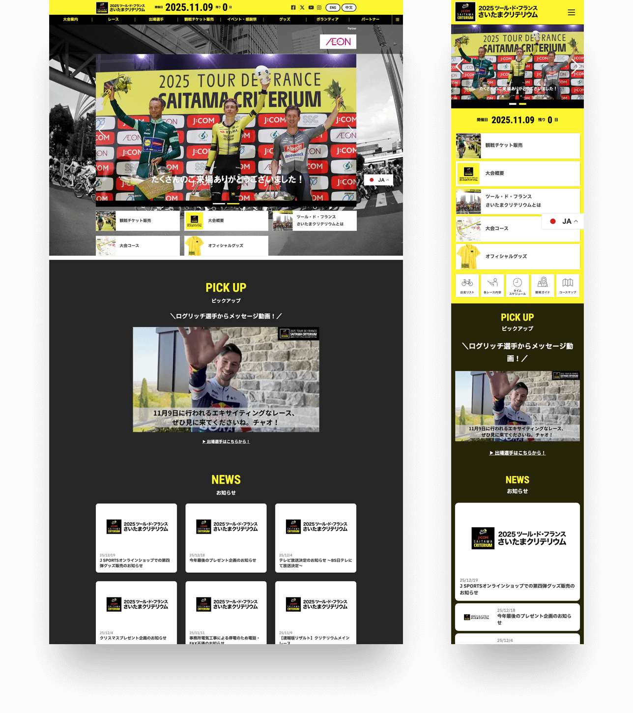 さいたま市で開催される、自転車競技のロードレース大会「ツール・ド・フランス さいたまクリテリウム」の公式ホームページについて、CMSの改善およびサイト運用を担当しました。